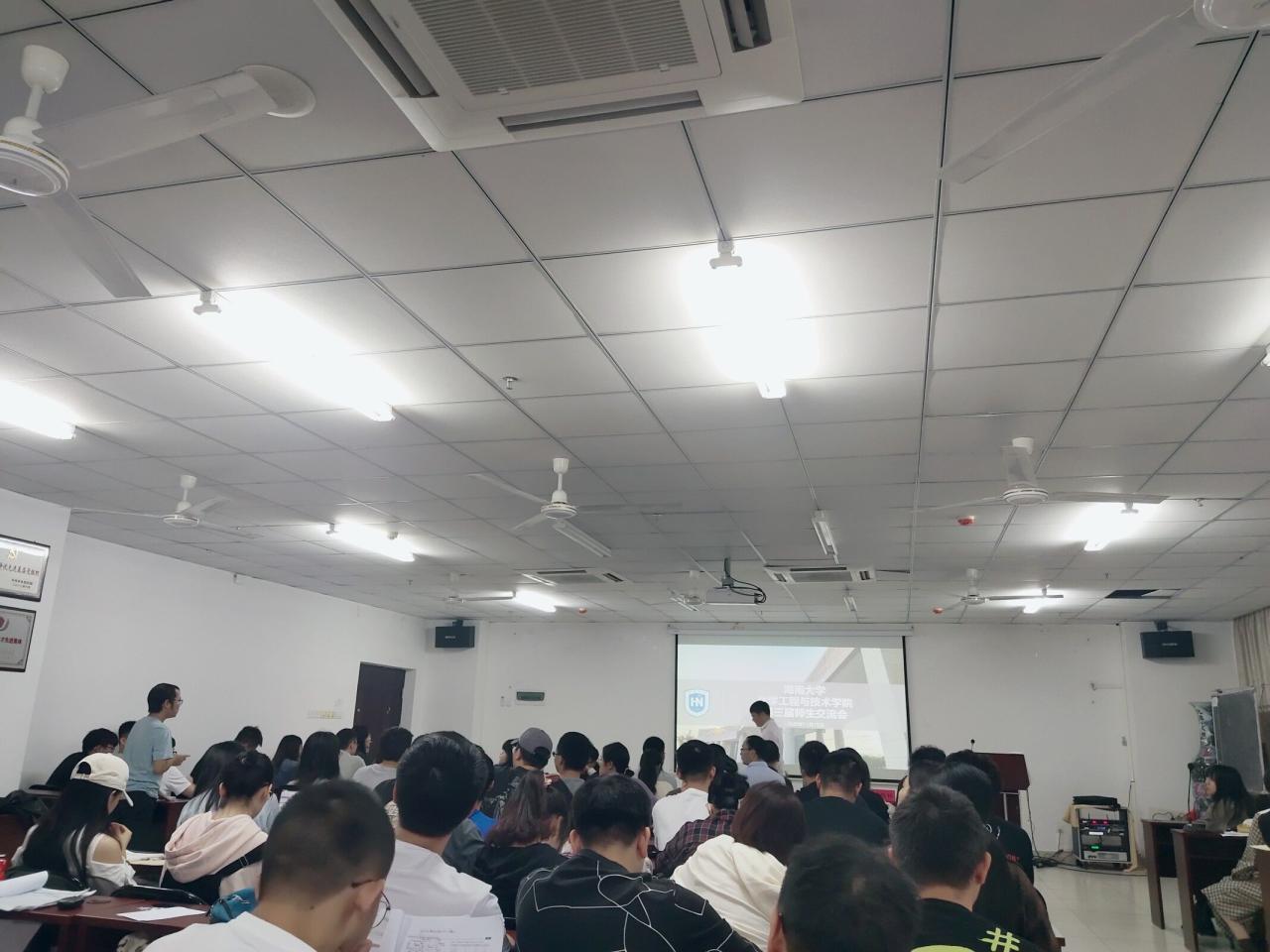 首先,主持人进行开场并介绍嘉宾老师并简要介绍“师生交流会”活动背景及目的活动流程。接下来,由各位主讲老师为我们进行科研和学习经验分享。尹学琼教授从研究生期间规划、人生长期规划为大家提供了指导,并且指出良好的人际关系也是必不可少的“人力资源”。陈铁桥教授提出了研究生和本科生是有很大差异的,研究生更需要“学习知识、应用知识、创造知识”,广泛学习,避免死胡同。宋辉教授则更注重于培养同学们的职业素养,从社会需要什么样的人才出发鼓励大家高效展示自己学习成果。周阳副教授新颖提出了读研期间要学会时间管理、交叉学习、思辨学习以及良好的口才必不可少。