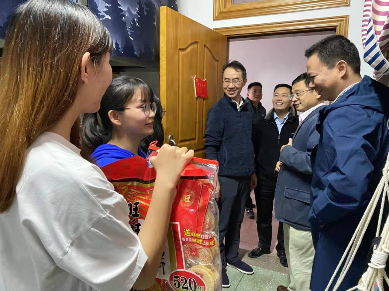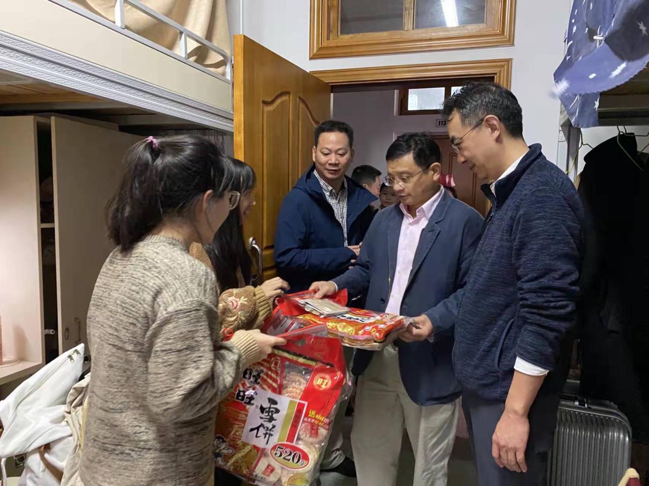 2022年全国硕士研究生招生考试即将到来,为帮助学生坚定考研信念,增强必胜信心,2021年12月23日下午17:00化学工程与技术学院李嘉诚、潘勤鹤、刘钟馨、贾春满四位副院长、党委副书记王林桂和全体辅导员一起去宿舍慰问备战考研的学子,并送上学院精心准备的“暖心礼包”。