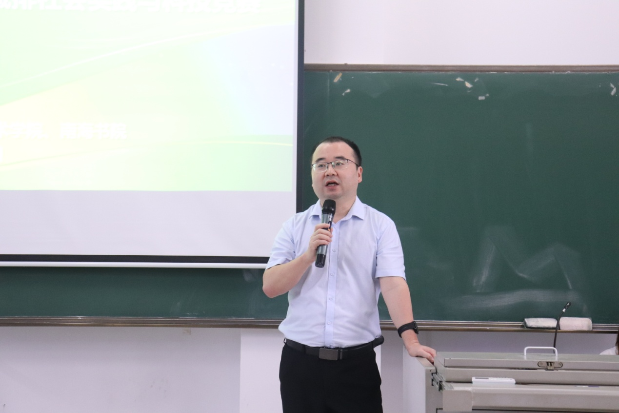 教务处耿刚副处长对本次比赛进行讲话:节能减排竞赛既有助于增强我校学生节能减排意识、促进学生课外学术科技的发展,激励大学生积极参与科技实践,还能培养刻苦钻研,勇于创新的精神,提高自身综合素质。