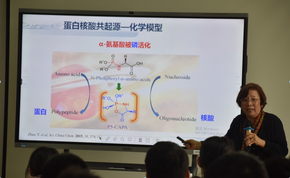 报告中,赵玉芬院士从磷化学的角度用生动形象的语言为我们阐述了生命的起源,详细介绍了蛋白质、核酸与磷之间的相互作用,进而揭示了生命的本质。赵玉芬院士指出了磷在生命演化中不可代替的作用,提出了磷是生命化学过程的调控中心的崭新观点,介绍了“磷酰化氨基酸(Α-氨基酸+P)是蛋白质和核酸的共同起源”的发现,并且分享了她的“磷与生命起源”的最新研究成果。