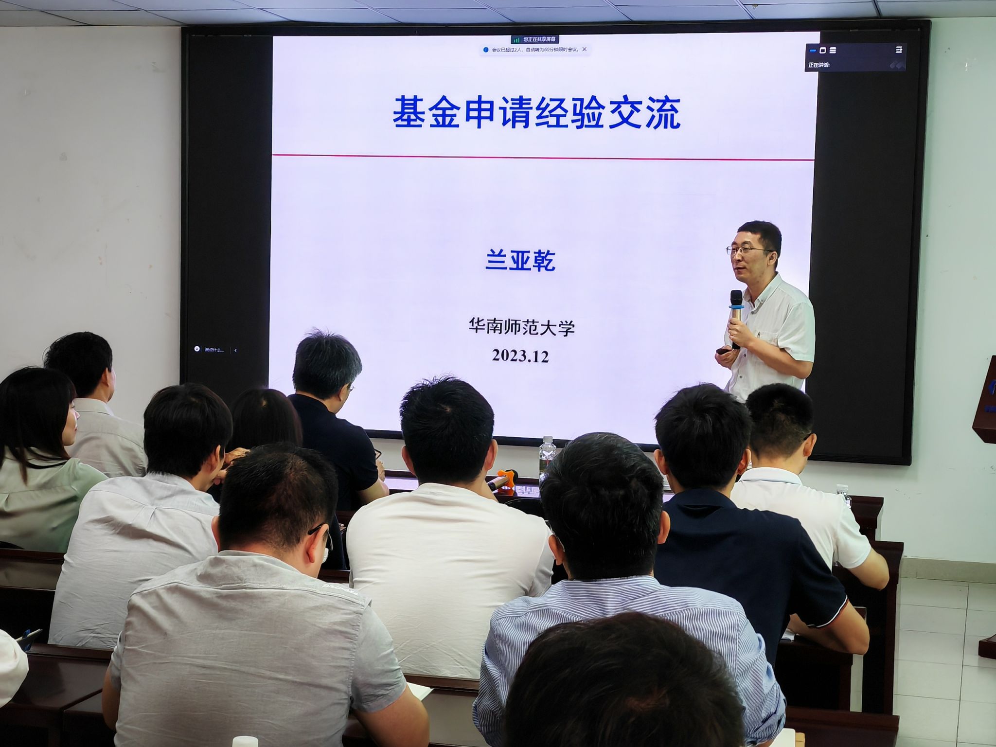 邀请华南师范大学兰亚乾教授在研发楼710会议室做国家自然科学基金申报经验交流分享。会议由卢兴院长主持,科发院副院长杨玮婷教授出席,学院全体院领导、教师及研究生参加了本次交流座谈。