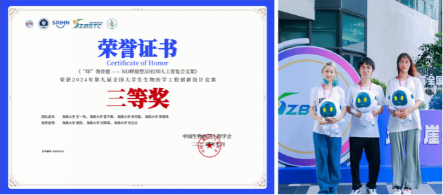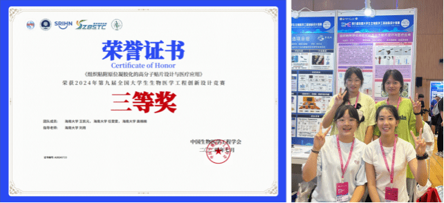 共三件作品进入复赛,分别是:化学工程与工艺专业2022级本科生王一鸣、苗子卿、徐可歆、李璟琇的参赛作品“‘印’领骨愈—NO释放型3D打印人工骨复合支架”(指导老师:周阳,刘萌萌,刘元元);应用化学专业2021级本科生王凯元、任雯雯、高楠楠的参赛作品“组织粘附原位凝胶化的高分子贴片设计与医疗应用”(指导老师:刘用);2023级硕士生王怡、李昊和化学工程与工艺2020级本科生张畅泽的参赛作品“慧眼识珠——革新型人工肺氧合膜材料的智能筛选与工艺探索”(指导老师:杨昱涵,刘亚楠)。经过复赛的作品评审、项目路演和答辩汇报等多个环节,最终“‘印’领骨愈—NO释放型3D打印人工骨复合支架”(指导老师:周阳,刘萌萌,刘元元)和“组织粘附原位凝胶化的高分子贴片设计与医疗应用”(指导老师:刘用)两件作品均获得全国三等奖。本次由私人直播