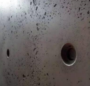 聚羧酸型高效减水剂(Polycarboxylate superplasticizer,PCE)作为清水混凝土常用的外加剂之一,因其用量少、减水率高、环境友好和分子可设计等特点,已成为混凝土外加剂领域的研究热点。传统梳型聚羧酸减水剂(T-PCE)以异戊烯醇聚氧乙烯醚(TPEG)为大单体,通过与丙烯酸(AA)进行自由基共聚形成梳型线性结构。然而,T-PCE聚醚侧链容易引入大量气泡造成清水混凝土含气量过高,导致其表观气泡多,难以达到外观色泽均匀、平整美观、无蜂窝麻面的要求,如图2所示;此外,清水混凝土含气量过大还会在混凝土内部引入大量有害连通孔,造成混凝土抗渗性和抗碳化性严重衰减,以致于建筑的稳定性和安全性大大降低。