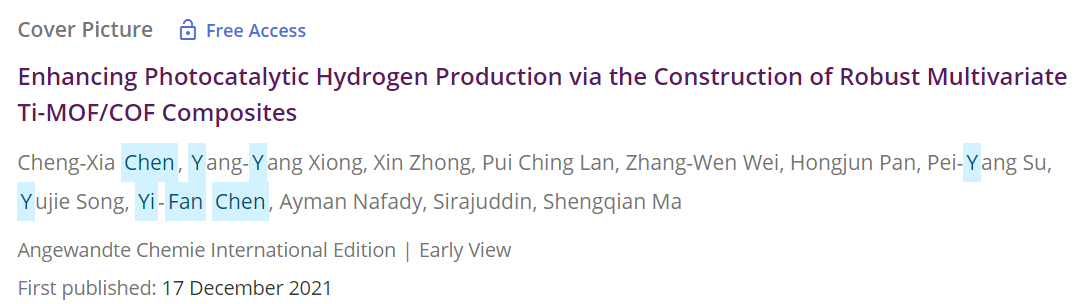 我校化工学院青年教师陈逸凡与美国北德克萨斯大学化学院马胜前教授团队,在国际学术期刊《Angewandte Chemie International Edition》上发表题为“EnhancingPhotocatalyticHydrogenProductionviatheConstruction of Robust Multivariate Ti-MOF/COF Composite”的研究论文(2021年12月17在线发表,doi.org/10.1002/ange.202114071)。私人直播