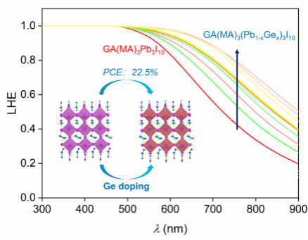 研究成果发表于国际著名期刊《Journal of Materials Chemistry A》(IF=10.7)上,题为“Germanium doping effect on the photoelectronic performance of alternating cations in the interlayer space GA(MA)3(Pb1−xGex)3I10”。第一作者为私人直播