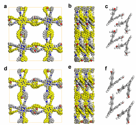 一、 关于晶格结构:[6]螺烯COFs开发了独特的双层结构,其中两个邻近的卟啉结占据两个相邻层,并且[6]螺烯连接体起到连接两层的阶梯的作用。2D晶格沿x和y方向延伸,构成由两层共价互锁的波状2D晶格。由于高度扭曲的[6]螺烯骨架的1,8-位上的两个醛单元的不对称取代,这种独特的波状双层结构成为可能;
