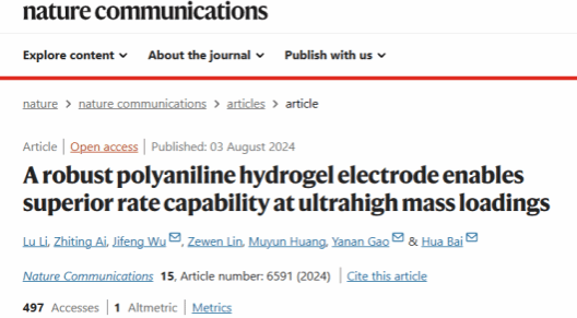 环境/能源材料先进制造与应用创新团队与厦门大学白华教授合作,在《Nature Communications》上发表题为《A robust polyaniline hydrogel electrode enables superior rate capability at ultrahigh mass loadings》的研究论文。私人直播