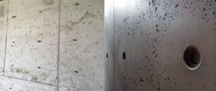图2 清水混凝土由于气泡过多产生的外观问题
