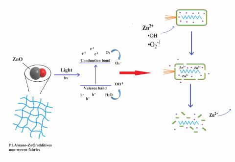 图4 可生物降解抗菌PLA/ZnO/助剂无纺布作用机制