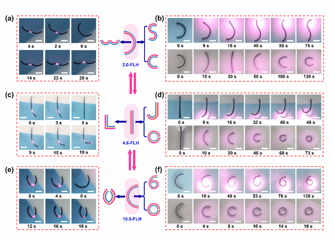 图4. 同一FLH不同编程的2D初始形状及其不同2D复杂驱动和不同最终2D形态