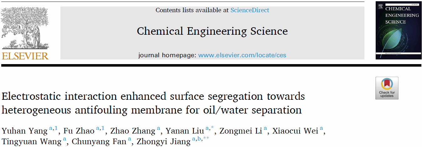 近日,姜忠义教授课题组在期刊《Chemical Engineering Science》(IF = 4.1)发表题为“Electrostatic interaction enhanced surface segregation towards heterogeneous antifouling membrane for oil/water separation”的研究论文。教育部讲座教授姜忠义教授、私人直播
