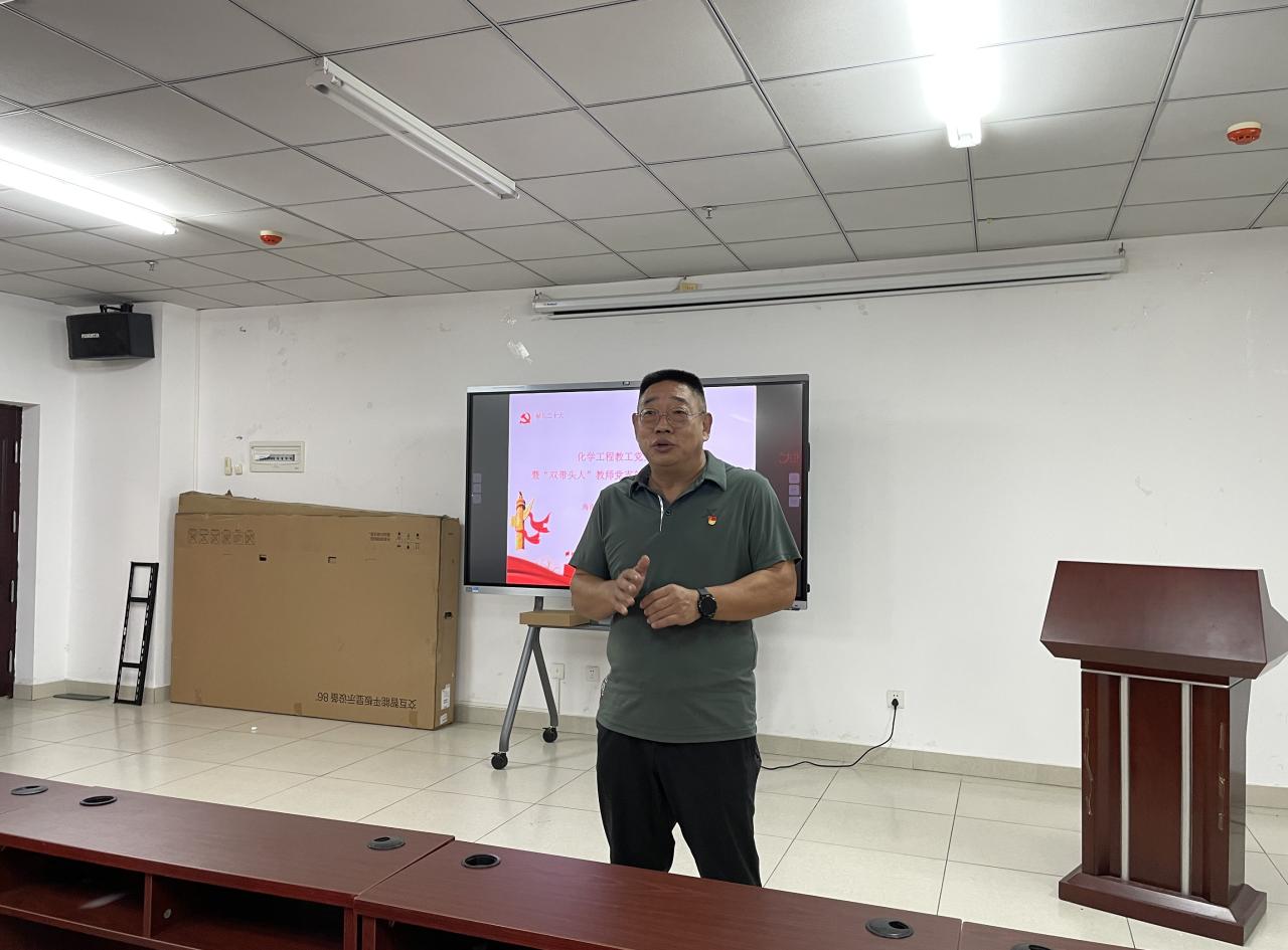 党的二十大报告向全党各级党组织发出“坚持大抓基层的鲜明导向,把基层组织建设成为有效实现党的领导的坚强战斗堡垒”的重要号召,这为我们做好当前基层党建工作提供了根本遵循、指明了行动方向。为深入学习贯彻党的二十大精神,持续推进基层党建工作提质增效,引领推动学院在学校各项事业创优争先,10月24日下午,学院在研发楼710会议室,化学工程教工党支部之家暨“双带头人”教师党支部书记工作室授牌仪式。学院党委书记冯广波、副院长刘钟馨出席会议,化学工程教工党支部全体党员以线上线下相结合的形式参会。会议由学院党委书记冯广波主持。