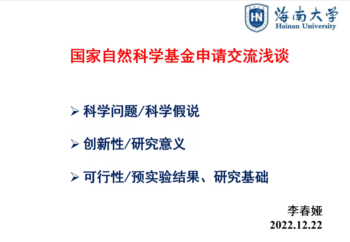 会议邀请获批2022年度国家自然科学基金青年项目的高助威老师、刘亚楠老师、李春娅老师分享基金申报经验。三位老师结合自身的申报经历分享了在基金申报过程中的经验和心得。
