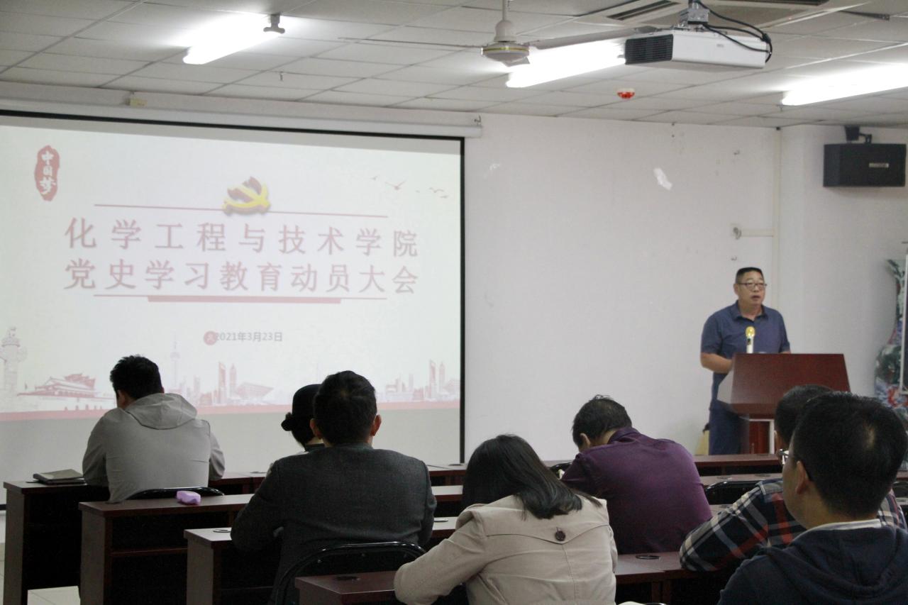 3月23日下午,在研发中心楼710大会议室,化学工程与技术学院召开全体教职工大会部署动员党史学习教育。党委书记冯广波首先传达了党中央、海南省委及学校党委关于开展党史学习教育的主要精神,布置了学院开展党史学习教育的主要工作步骤、方法、措施等。他要求全体中层干部、全体党员包括每位教职员工都要从爱党爱国爱人民的基本点出发,学党史、悟思想、办实事、开新局,在教学科研中学史明理、学史增信、学史崇德、学史力行,不断树牢增强立德树人的意识,为学院建设发展,为学校争取“双一流”作出自己最大的贡献。各分管领导也结合党史学习教育对各项工作进行了布置。